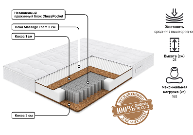 Матрас Anatomic Duo Pro 160 х 195 Выше среднего с пружинным блоком