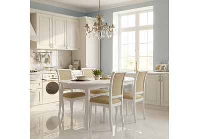 Стол обеденный Мане К1100 опоры белый(зол) / столешница белый глянец ЛДСП Стекло