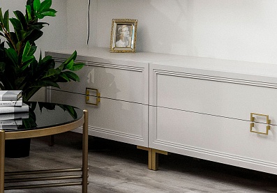 Мебель из коллекции «Дольче» сочетает в себе признаки эклектики, ар-деко иминимализма. Двуспальная просторная кровать выглядит престижно и элегантно. Основная повторяющаяся в дизайне геометрическая форма — квадрат.