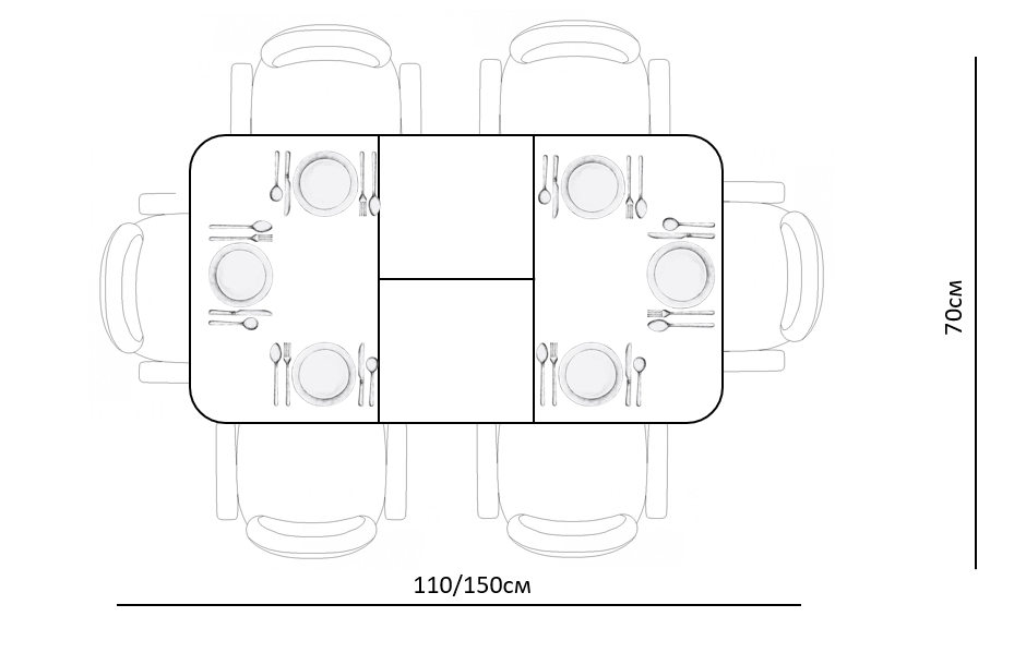 Размер стола компактный и в то же время достаточно вместительный для ежедневного использования 4 человек, по каждой стороне достаточно места чтобы поставить 4 широких стула вокруг стола; механизм раздвижения со стеклянной вставкой позволяет комфортно посадить еще 2 гостей. Компактный и очень функциональный стол, идеален для использования как на небольшой кухне, так и в качестве уютной обеденной зоны в гостиной.