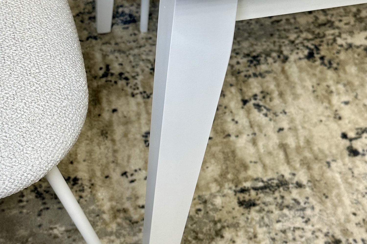 Столешница из стекла надежно защищает стол от влаги и горячего. Для данного стола применяется дорогое, просветленное стекло optiwhite которое передает чистый, яркий цвет без зеленого бутылочного оттенка. Стекло надежно крепится к подложке из ЛДСП на герметик, распределенный по всей поверхности столешницы.